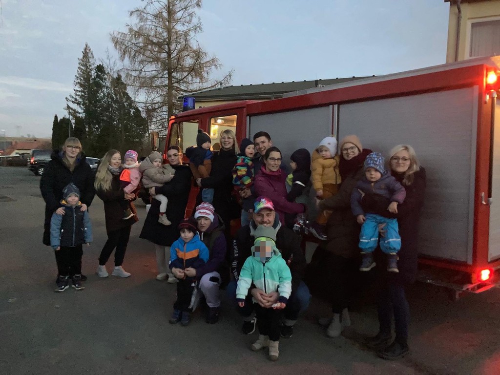 draußen auf uns: Die Feuerwehr Coschütz kam vorbei und sorgte mit Rundfahrten für große Begeisterung ??. Danach übergab sie den Weihnachtsmannsack mit vielen Geschenken ? – die leuchtenden