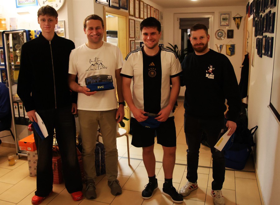 Das erneute Hallenweihnachtsturnier wurde bei der abschließenden Auswertung im Vereinszimmer, wieder zu einen voller Erfolg. Der Präsident Ronny Röder und Fußballabteilungsleiter Carsten Sänger bedankten sich nach dem Turnier für die Fairness im Turnier bei der Siegerehrung. Dannach gab es wie immer ein gemütliches Zusammensein.