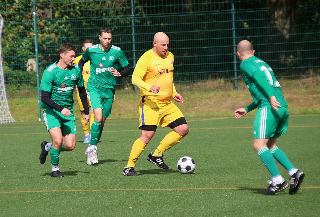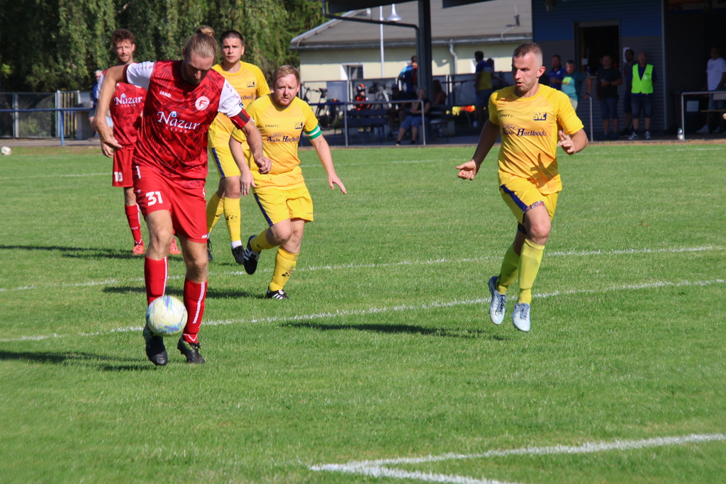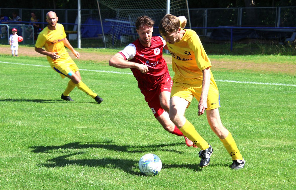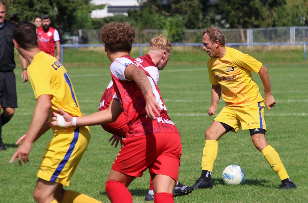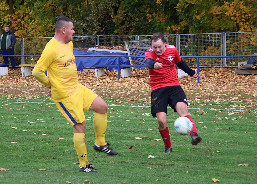 Er war es auch, der uns in der 85.Minute in die Verlängerung schoß. Die Gäste , die 2 Klassen höher spielen, hatten den besseren Beginn. Wir erhielten in der 9.Minute einen Eckball. Der auf den langen Pfosten geschossene Ball, landete bei Andreas Otto, der den Ball volley unter die Latte zum 1 : 0 einschoß. Leider folgt eine Minute später der Ausgleich per Elfmeter, beim dem unser Keeper in der Entstehung nicht gut aussah. Das 1 :1 war die Folge und die Gäste kamen wieder besser zum Spiel. Bis zur 28.Minute spielte sich alles im Mittelfeld ab. Kaum Torraumszenen, was aber auch bedeutete, das unsere Abwehr gut stand. Bei einem steilen Pass auf links außen in den Strafraum liesen die Gäste unseren Keeper keine Chance 1 : 2 ( 42.). Es war ein gutes Spiel unserer Mannschaft trotz des 1 : 2 zur Pause.