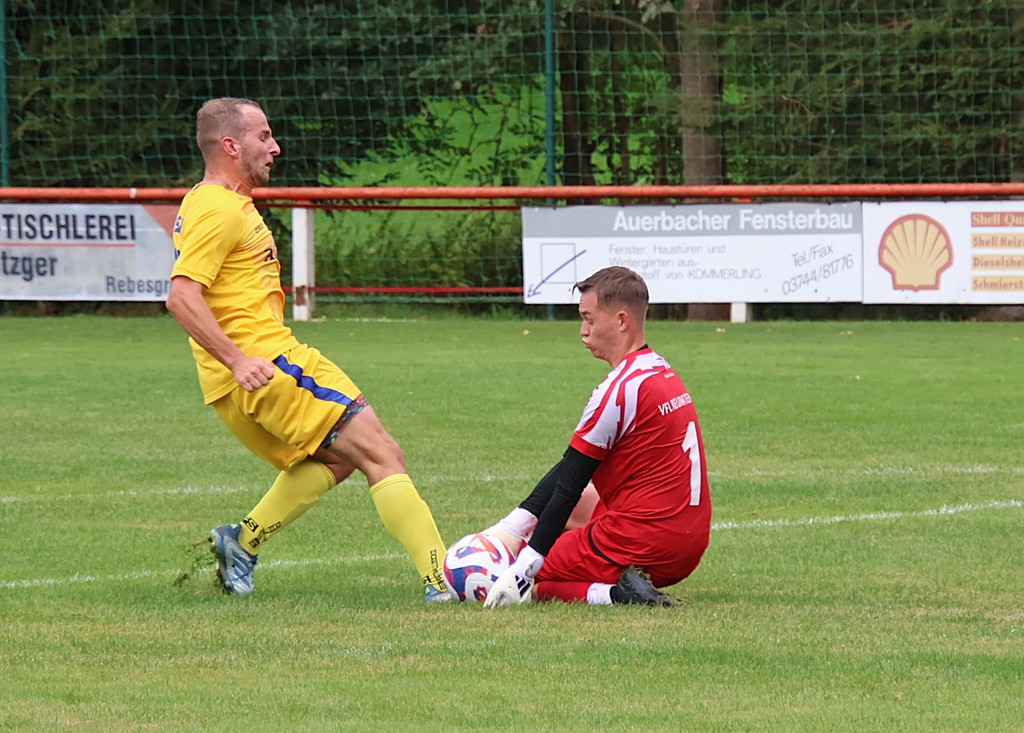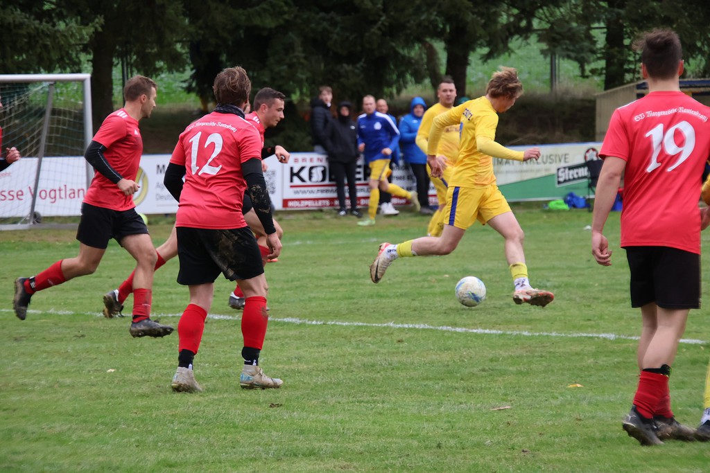 Es war das erwartet schwere Spiel bei der Reserve des VfB Schöneck 1912. Auf dem Kunstrasenplatz tat sich unsere Mannschaft schwer. Die Bälle springen anders und es ist auch eine schnellere Spielweise gegeben. Auch ist dieser relativ kleine Platz für unseren schellen Spielern nicht einfach. Unsere erste richtige Chance hatte Andreas Otto in der 16.Minute. Allein aufs Tor zugehend trifft er nur den Innenpfosten, von den der Ball wieder ins Feld springt. Dagegen mußte Maurice Oertel 3 Minuten später sein Können zeigen und verhinderte den Rückstand. Vieles blieb Stückwerk, weil der Gastgeber immer wieder energisch parieren konnte. Tom Dietzmann hatte nach einem Einwurf von Martin Wicht noch eine Minichance. Mit dem 0 : 0 ging es in die Pause.