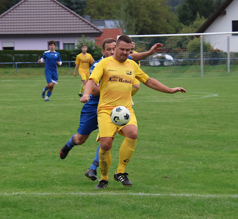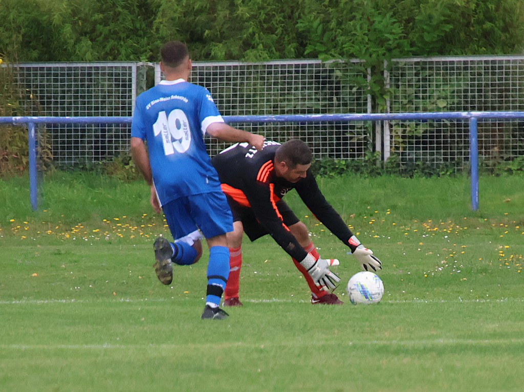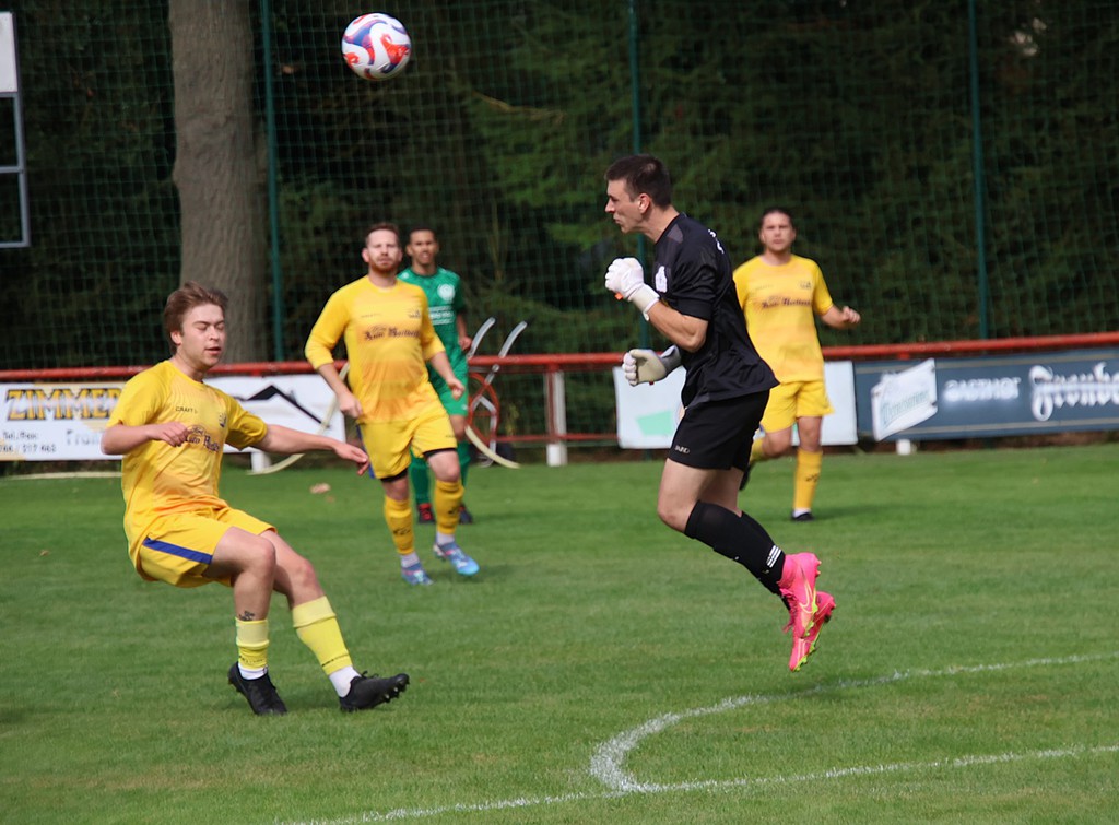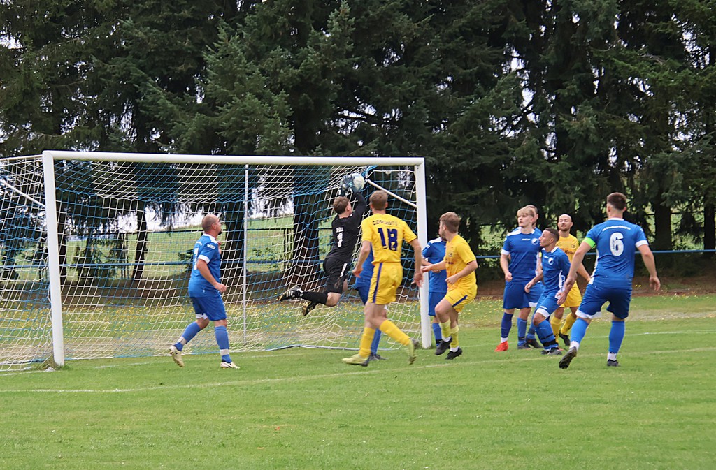Von Beginn an knüpfte die Mannschaft an das letzte Spiel an. Wir setzten den Gastgeber unter Druck und hatten schon in der 2.Minute durch David Flach die erste Chance. Aus etwa 18 m und spitzen Winkel zog er ab, doch der Keeper konnte den Ball abwehren. 3 Minuten später durch Michael Strauß die nächtste Möglichkeit bei einem Eckball und wieder David, der am Torhüter scheiterte. Dies sind nur einige Chancen zu Beginn. Weiter 16.Minute Nick Reinhold bei Konter links am Tor vorbei . 1 Minute später David trifft zum 0 : 1 wegen Abseits zurückgepfiffen, 19.Minute Nick Reinhold scheitert am Torhüter. Dann dochdie reguläre Führung. Andreas Otto trifft vom Elfmeterpunkt in der 26.Minute. Unser Problem in der 1.Halbzeit war die schlechte Chancenverwertung.