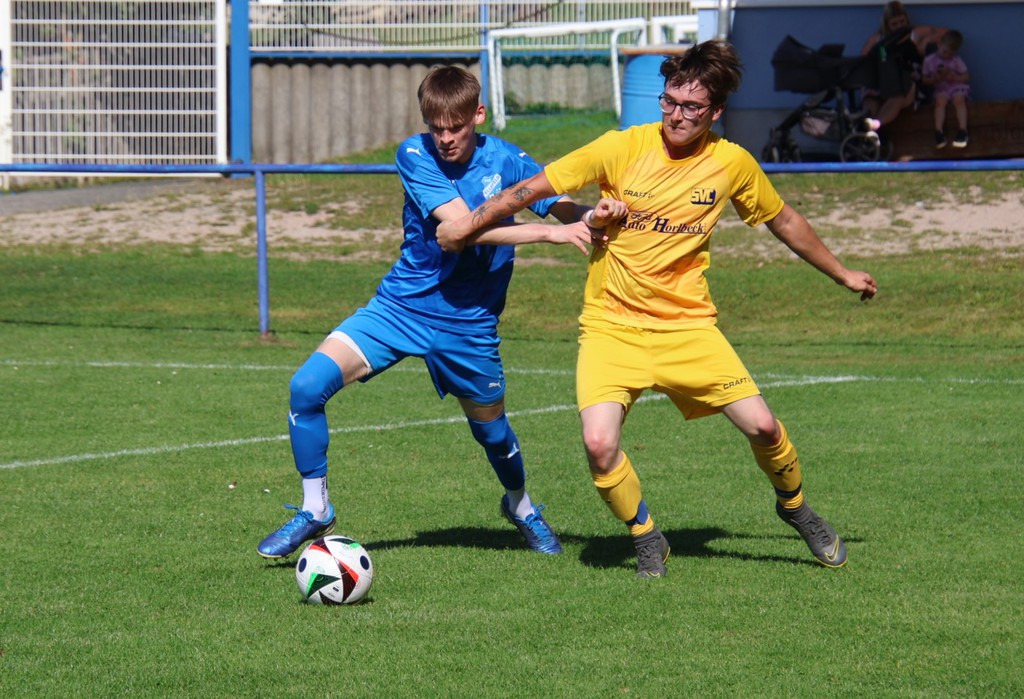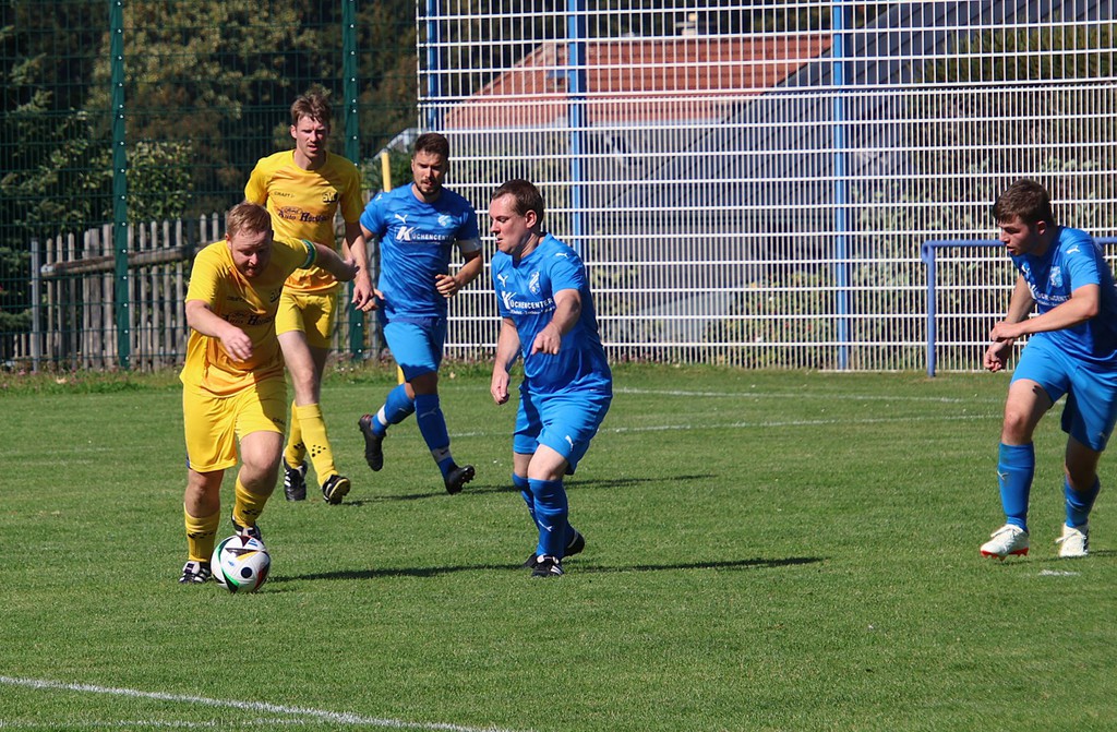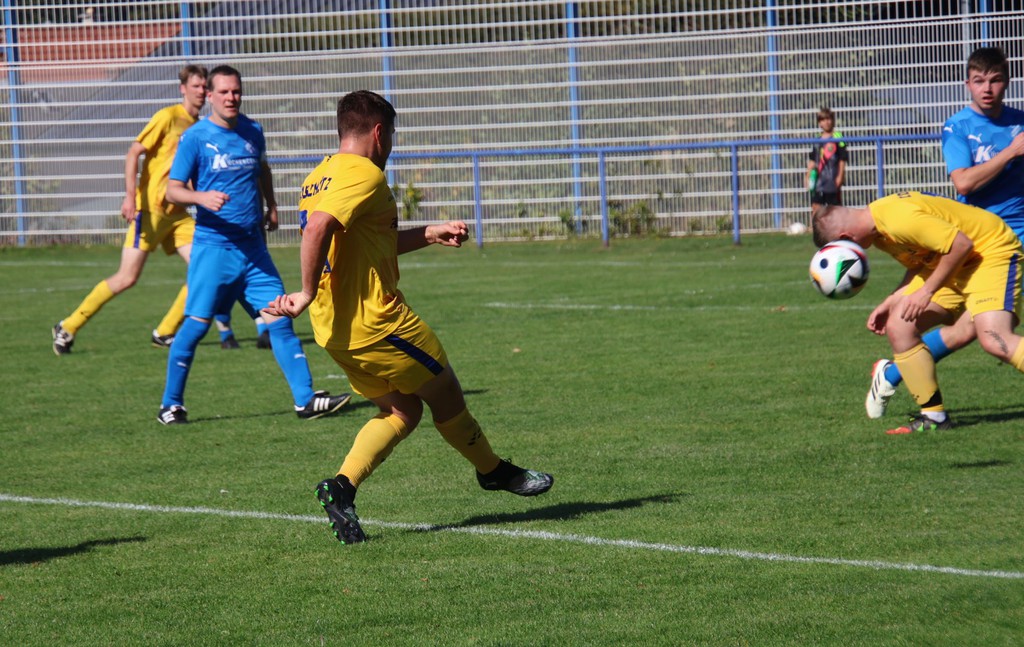 Zu Beginn der 2.Halbzeit mußte sich Mo lang machen um das 0 : 1 zu verdeitigen. Als in der 54.Minute die Gastgeber hinter unsere Abwehr spielte, konnten wir den Ball nicht abwehren und es stand 2 : 0. Der Gastgeber erhöhte nun auch das Tempo. Eine scharfe Eingabe in der 57.Minute verpaßten sie zum vorzeitigen Sieg in der 57.Minute. Unsere ersatzgewächte Mannschaft zeigte aber Moral. Lukas Stier erzielte mit einem satten Schuß aus ca. 18m den Anschlußtreffer zum 2 : 1. Die Gastgeber nutzten ihre Chancen besser. Oliver Scharm rettete in der 68.Minute noch auf der Linie und in der 82.Minute die Querlatte. Dann wurde es noch eimnmal spannend. Tim Steglich erhöhte auf 3 : 1 und Martin Wicht schaffte das 3 : 2 in der Nachspielzeit (90+3). Noch 2 Minuten kamen hinzu, leider kein Erfolg.