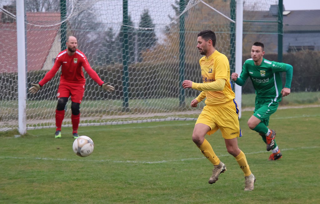 Auch Robby Hübscher, der wegen Rotsperre pausieren muß, appelierte sich mannschaftlich zu unterstützen. Matthias Hahn wechselte gleich doppelt nach der Pause. Oliver Schiek und Florian Jäger kamen für David Flach und Martin Wicht. Ein weiterer Wechsel dann in der 55.Minute Max Dinger kam für Tom Dietzmann. Es dauerte bis zur 60.Minute, da erhöhte Andreas Otto zum 0 : 3. Eine Flanke von der rechten Seite verwandelte er per Kopf. Es ist sein 10 Tor in dieser Saison. Oliver Schiek setzte sich in der 65. Minute im Strafraum im Strafraum durch und erzielte das 0 : 4.