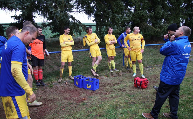 In der 2.Halbzeit wurde es auch nicht besser. Einige Abspielfehler oder das Nachsetzen der Gastgeber hemmten den Spielfluß. Es war ein Spiel mit viel Krampf statt Kampf. Dazu kamen auch viele unnützige Fouls. Bei einem verletzte sich ein Spieler der Gastgeber und wurde ins Krankenhaus gefahren. Gute Besserung aus dem Coschützer Lager !
